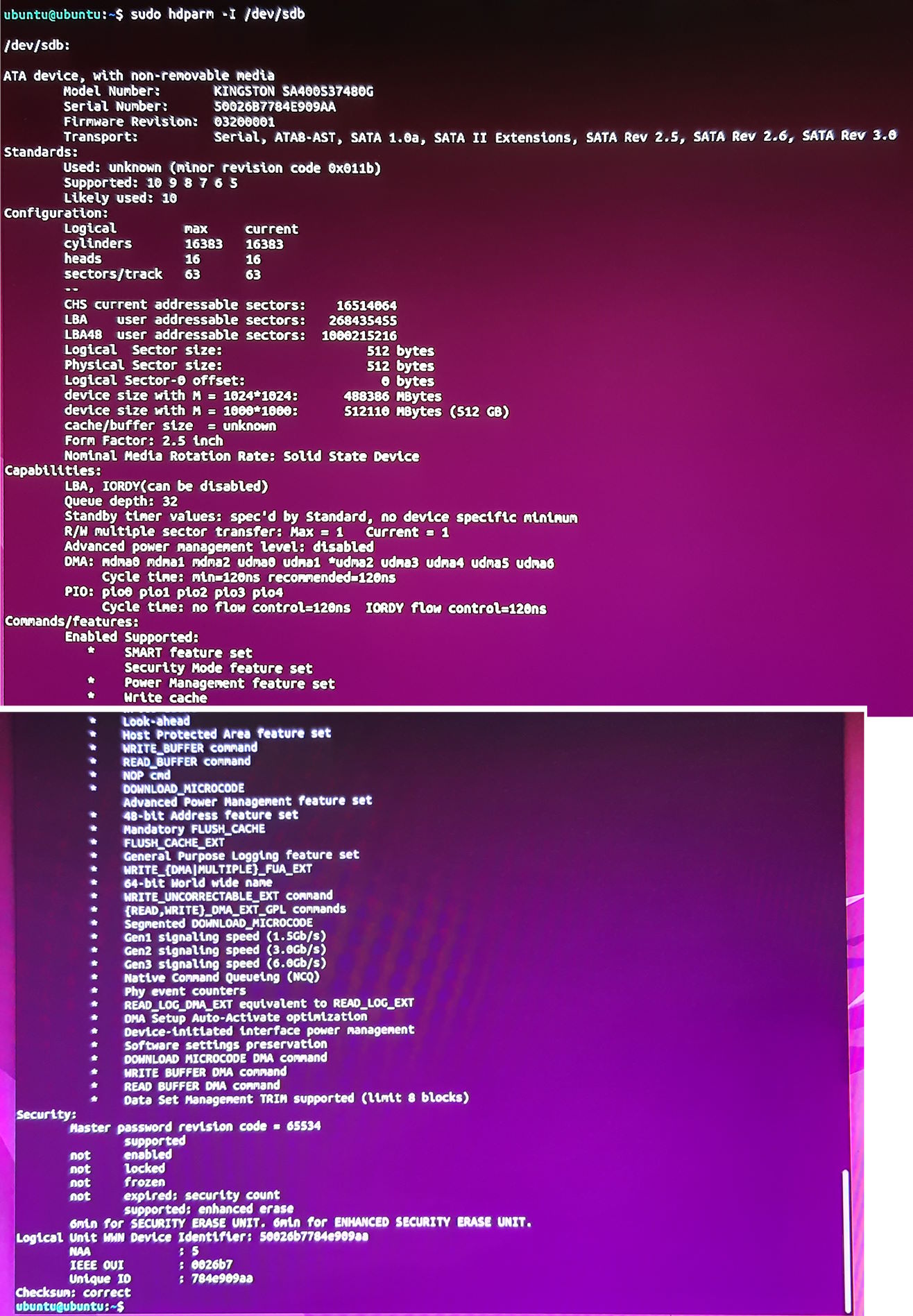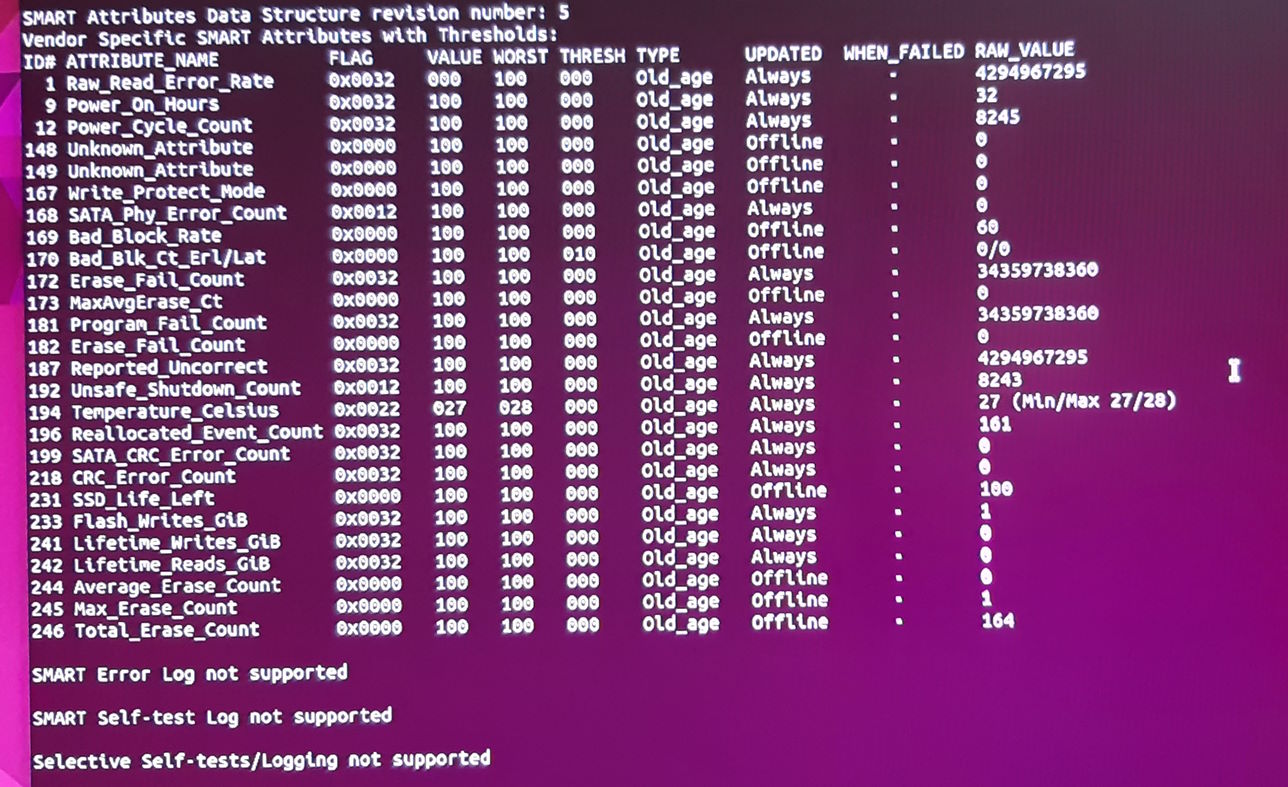 Das "Laufwerke" Programm sieht die SSD und alle Smart Werte sind tip top. Allerdings sagt er 512 GB Unknown. Er kennt die Größe aber Inhalt ist unkown. Gerät ist /dev/sdb (sda ist ja der USB Stick).