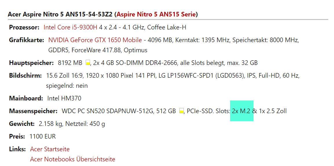 Kann ich in diesen Laptop eine M.2 einbauen ?