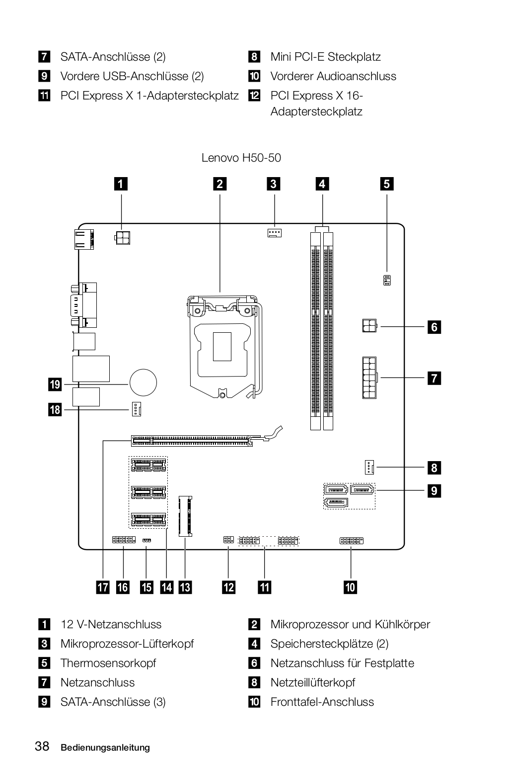 Das ist das Mainboard laut Handbuch, 7 ist die Stromversorgung fürs Mainboard. Ohne Adapter kann man ein normales ATX-Netzteil nicht an diesem Mainboard betreiben. https://www.amazon.de/Lenovo-Netzte...=2025&creative=165953&creativeASIN=B0758G3PXC