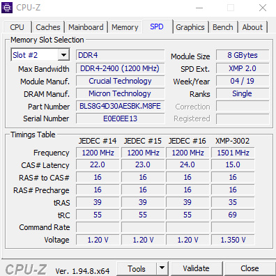 -RAM: DDR 4, 16 GBytes (2 mal 8, Fräquenz: 1466.3 MHz