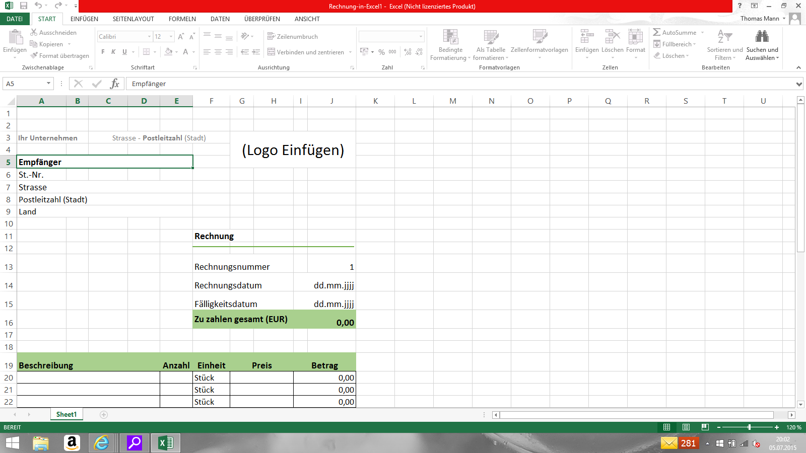 Hallo Ich wollte in Excel eine Rechnung erstellen, nur kann ich nichts anklicken. Es ist alles so wie oben auf dem Screenshot grau unterlegt, sogar bei Rechtsklick. Außerdem wird oben angezeigt, dass Excel nicht lizensiert sei, obwohl ich den Produktkey schon auf office.com/setup aktiviert habe. Oder muss man den nochmal in excel eingeben?