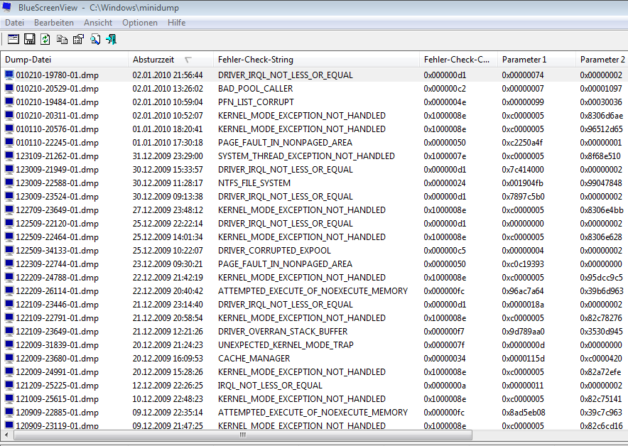 habe nun ein programm installiert um die dump datei auszulesen, werde aber nicht schlau daraus! kann lemand helfen!?