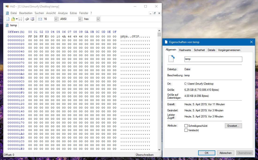 Diese Pfeile zeigen an, dass die Dateien via NTFS komprimiert sind. Sie sind also wahrscheinlich komplett leer (mit Nullen aufgefüllt) und kommen deswegen auf unter 4 KB. Das kann man leicht mit einem Hex-Editor überprüfen (für Windows z.B. HxD).