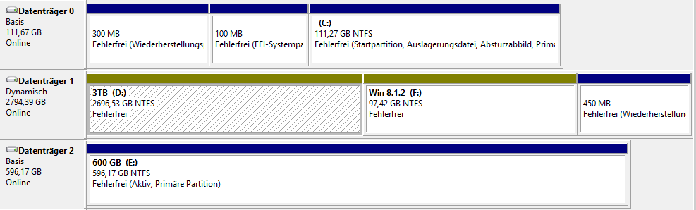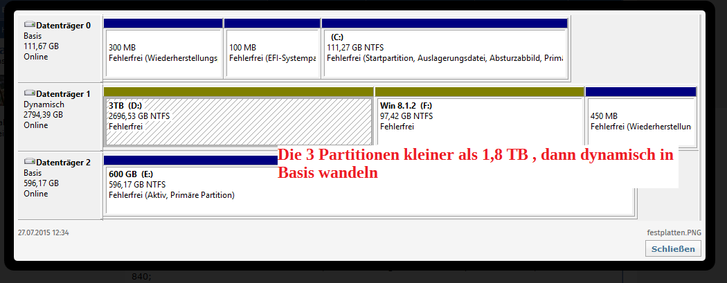 ich habe ein Problem, ich wollte mir nun Multiboot mit zwei Windows 8.1 einrichten, allerdings scheint beim partitionieren etwas falsch gelaufen zu sein. (siehe Anhang)