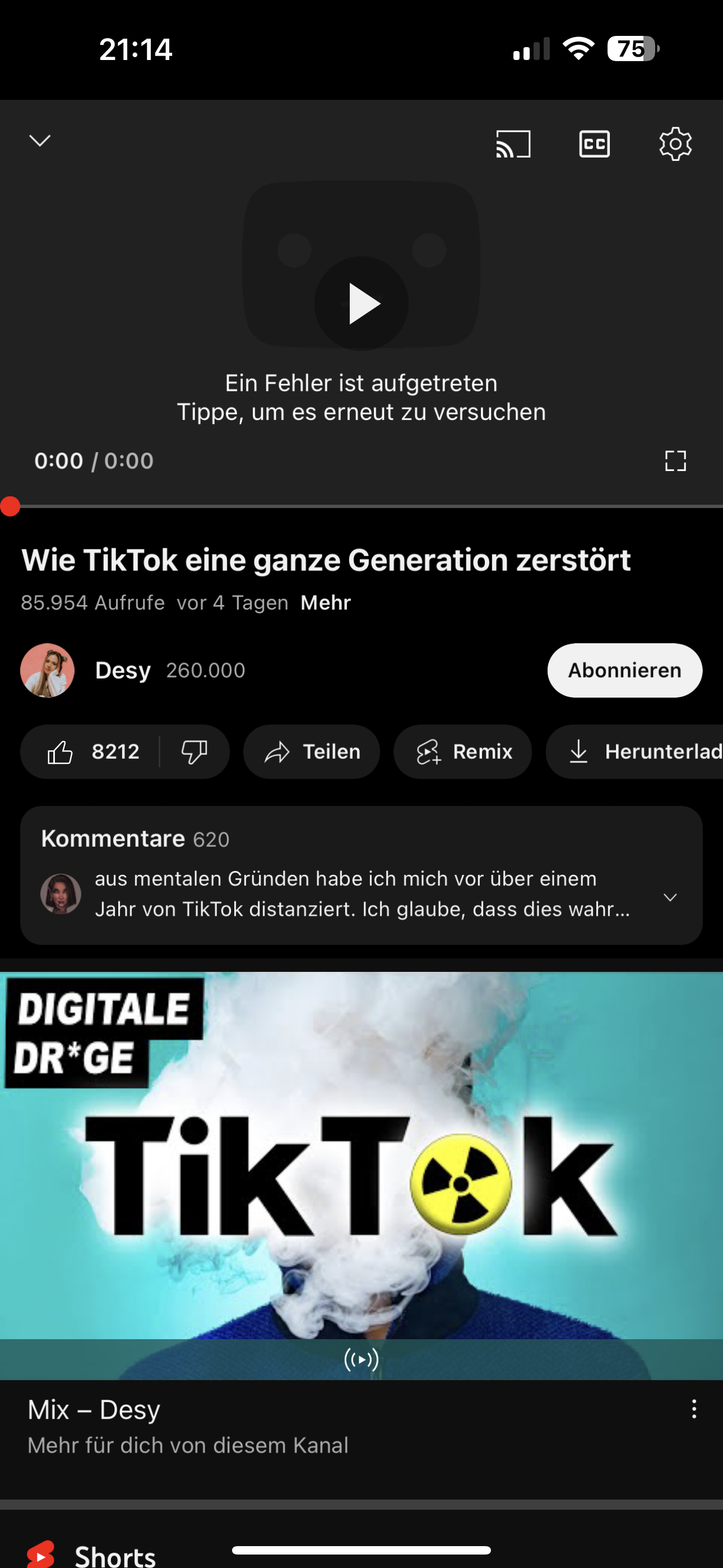 Seit etwa 2 Wochen kann ich keine Videos mehr auf YouTube schauen über mein iPhone 14 pro Max.