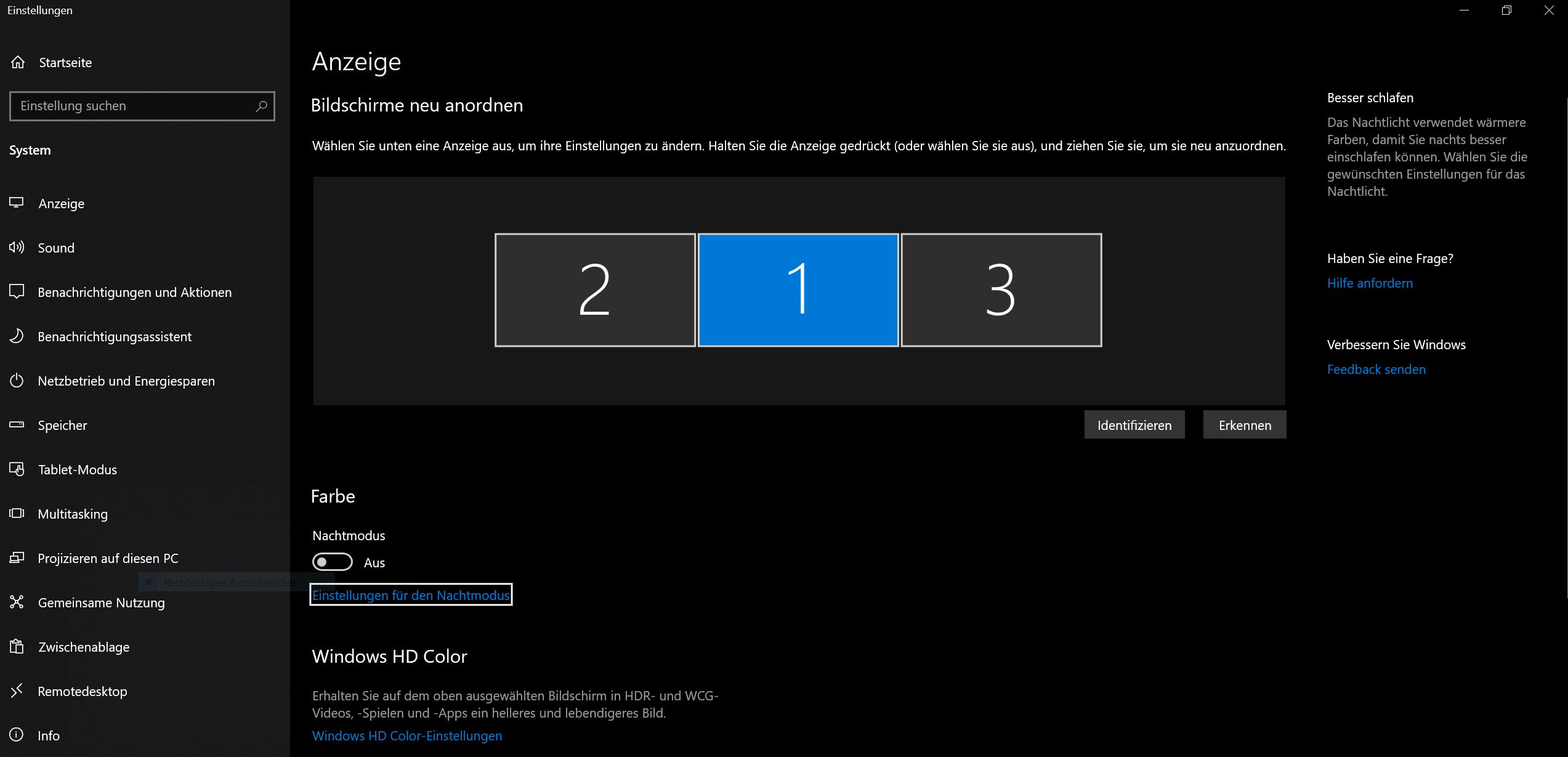 Leider werden aktuell nur 2 erkannt über W10 ( Anzeigeeinstelungen )