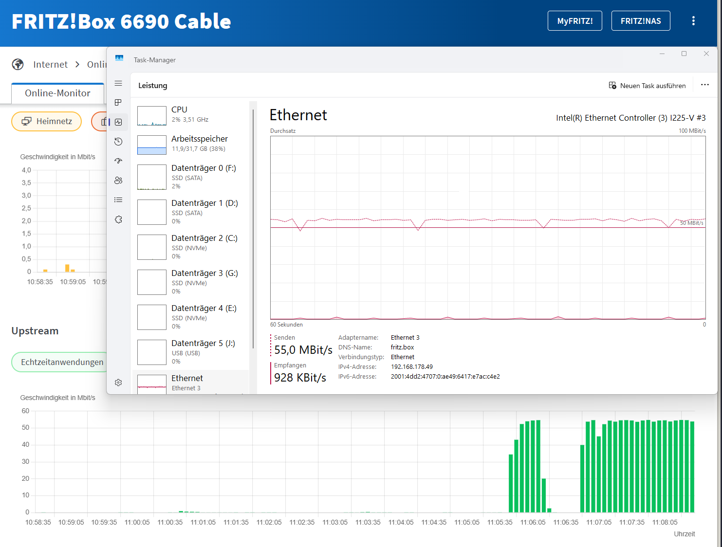 und normale Speed tests zeigen auch nur 50 mbits upload max