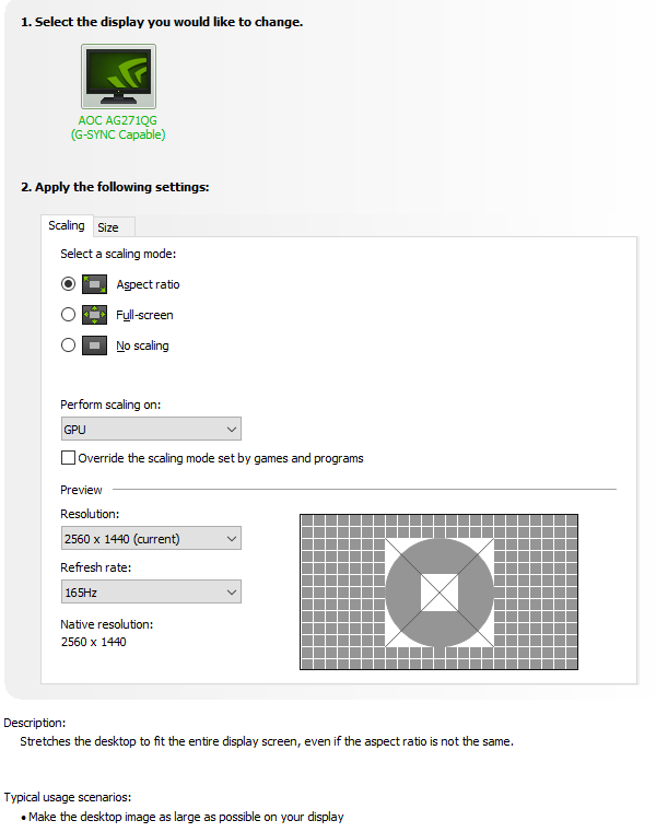 Ich habe einen 1440p-Monitor und würde gerne zum Spielen mit der Nintendo Switch nur die mittleren 1080p des Monitors verwenden für ein besseres Bild. Skalierung von 1080p zu 1440p macht das Bild pixeliger und unschärfer.