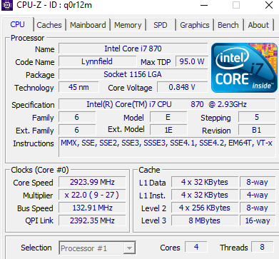 CPU: Intel i7 870
