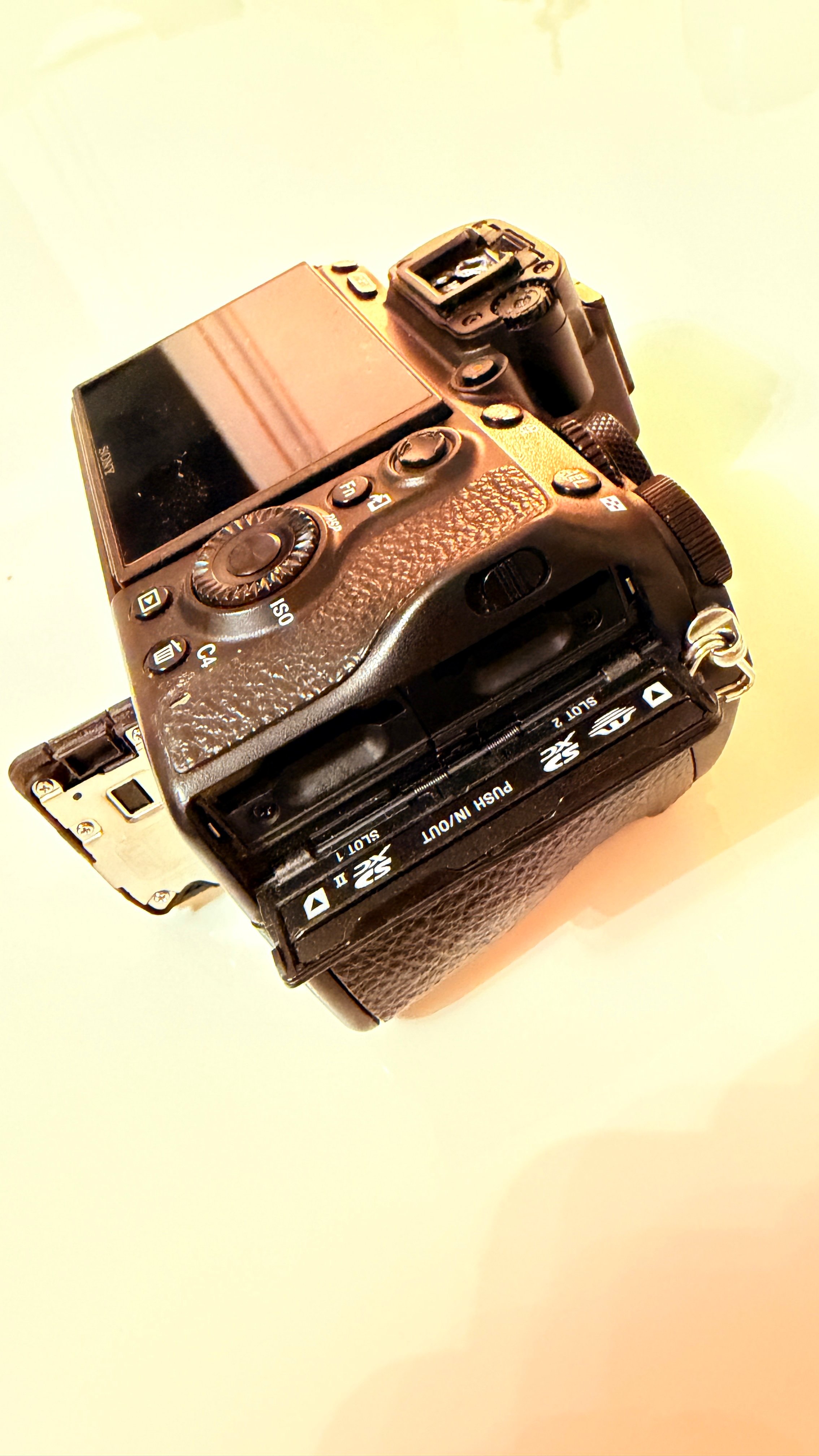 Also das Display der Kamera ist noch ganz und der Akku auch. Auch SD Karten können problemlos rein und rausgemacht werden.