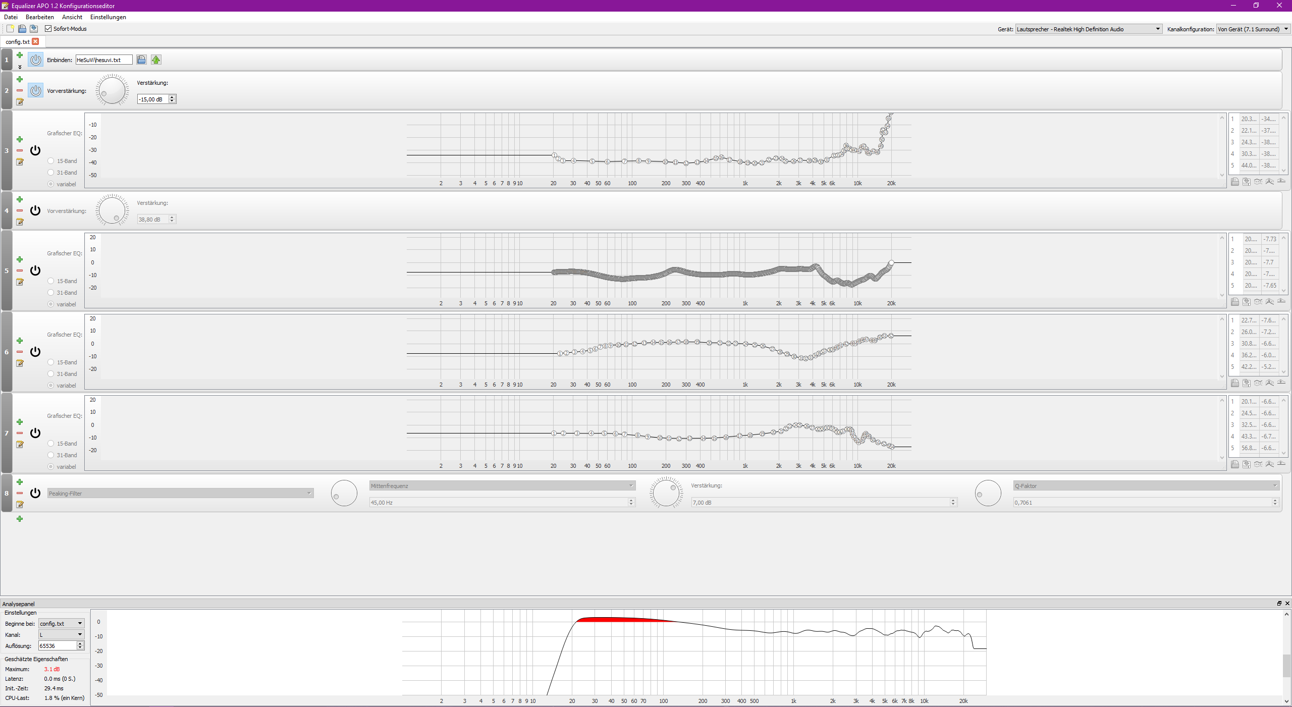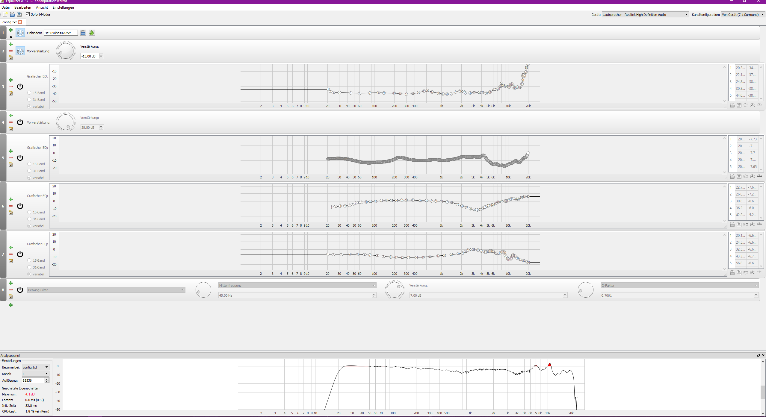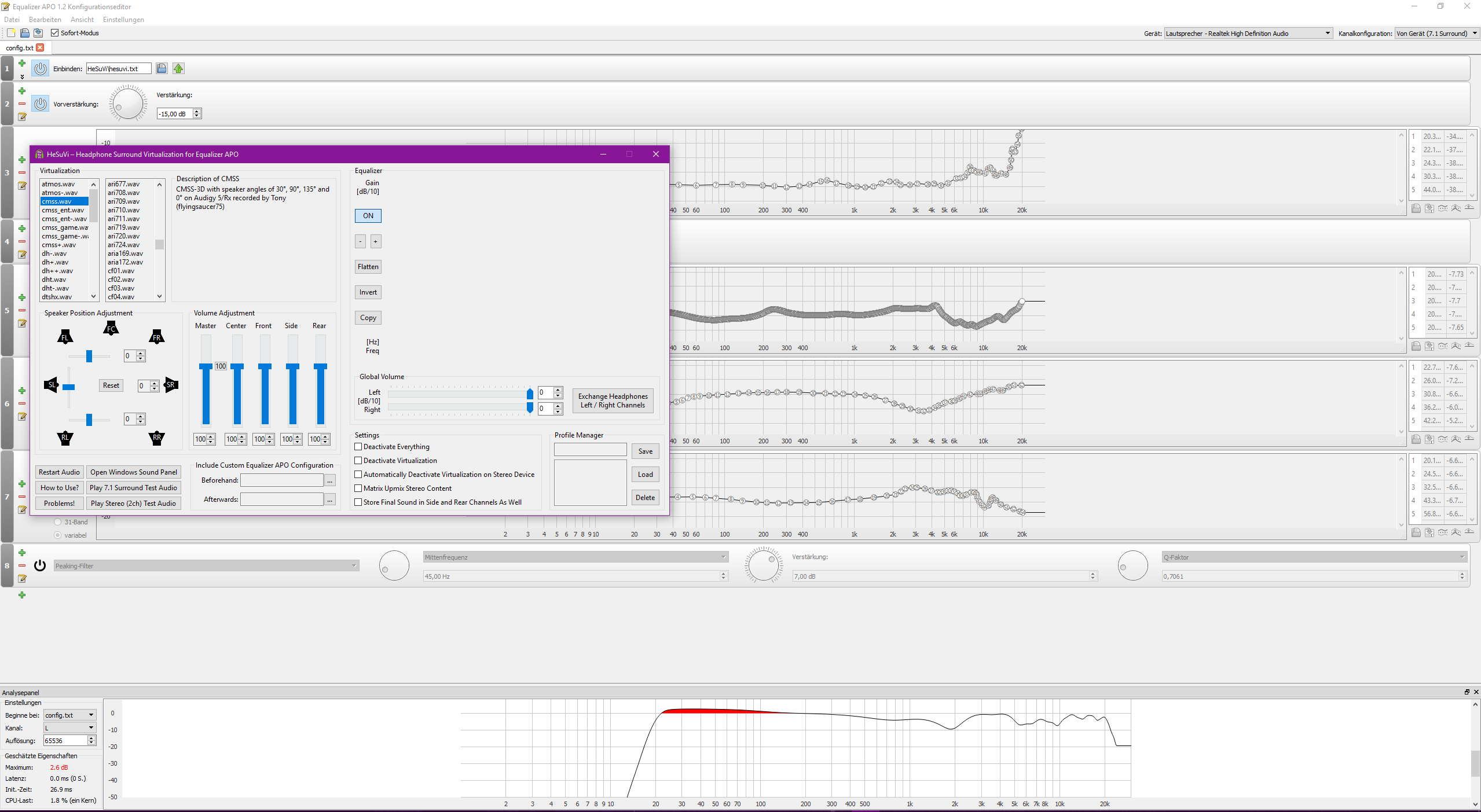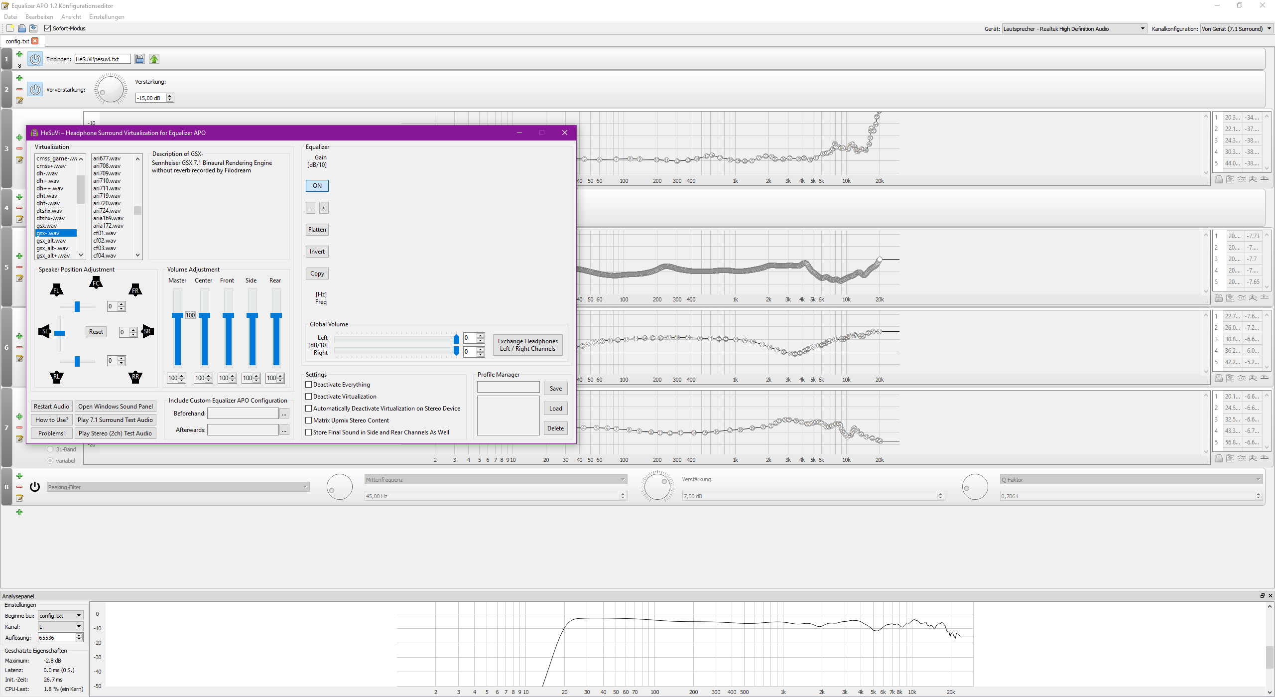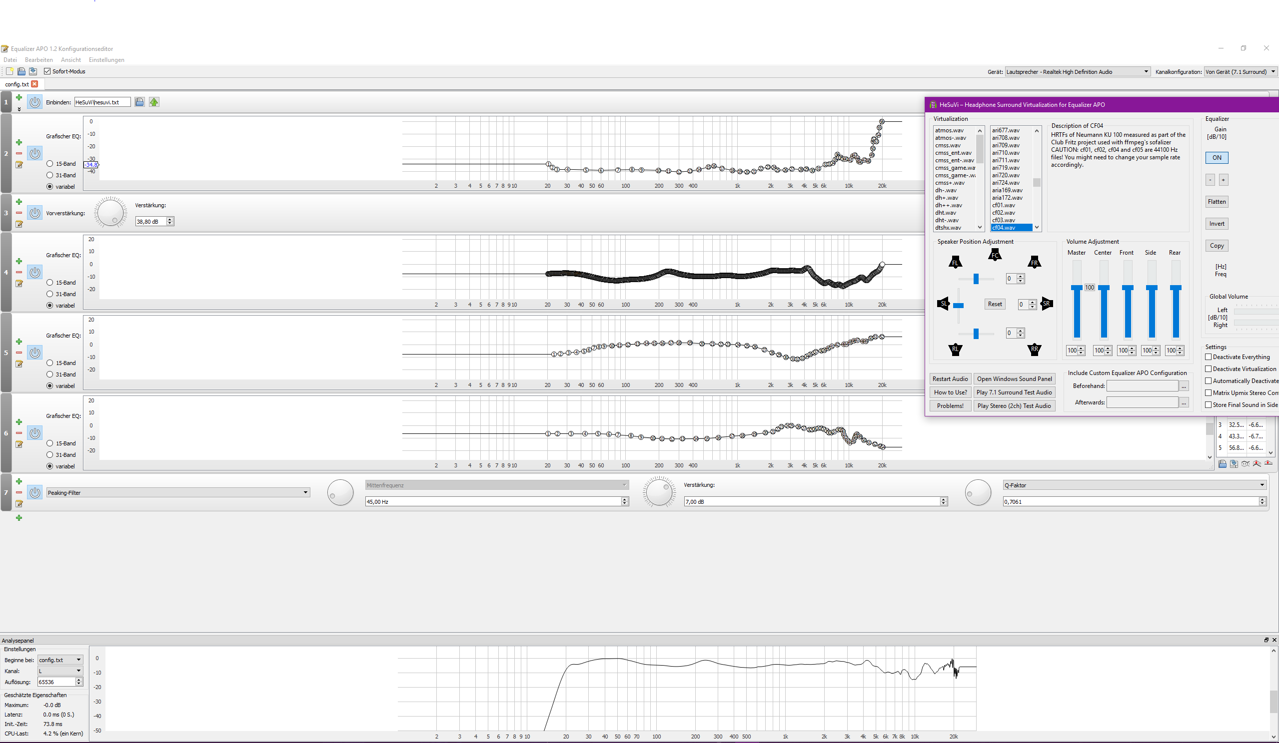 Der Teil wurde bei den meisten HRTFs mit künstlichem Torso denke ich kaum berücksichtigt.In real life our tissue and bones play a huge role in the perception of low frequencies, which headphones cannot provide. Measuring of speakers and headphones does not compensate for the fact that our bodies and bones multiply the frequencies below 100hz quite considerably.