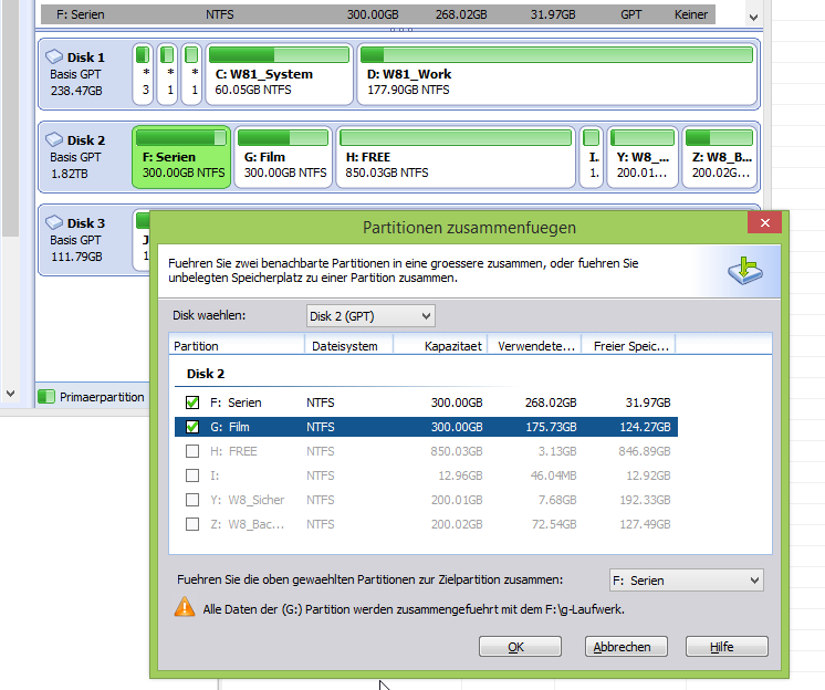 Möchtest du bei dir F: H: und I: zu einer einzigen also F: zusammenführen?
