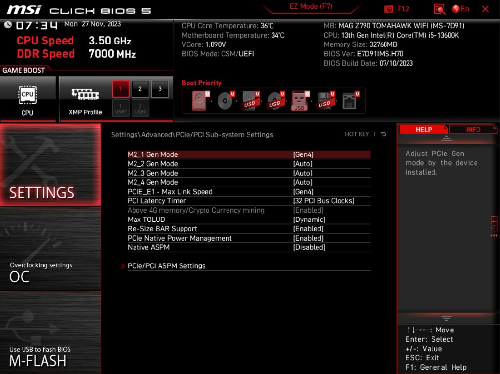 2. Habe ich sonst evtl. etwas übersehen? Z.B. Einstellungen "PCIe Native Power Management" oder "PCIe Latency Timer"?