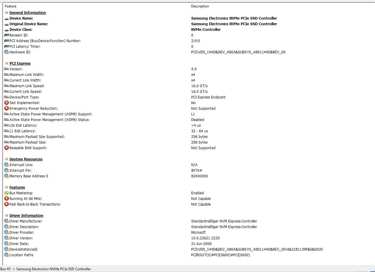 2. Habe ich sonst evtl. etwas übersehen? Z.B. Einstellungen "PCIe Native Power Management" oder "PCIe Latency Timer"?