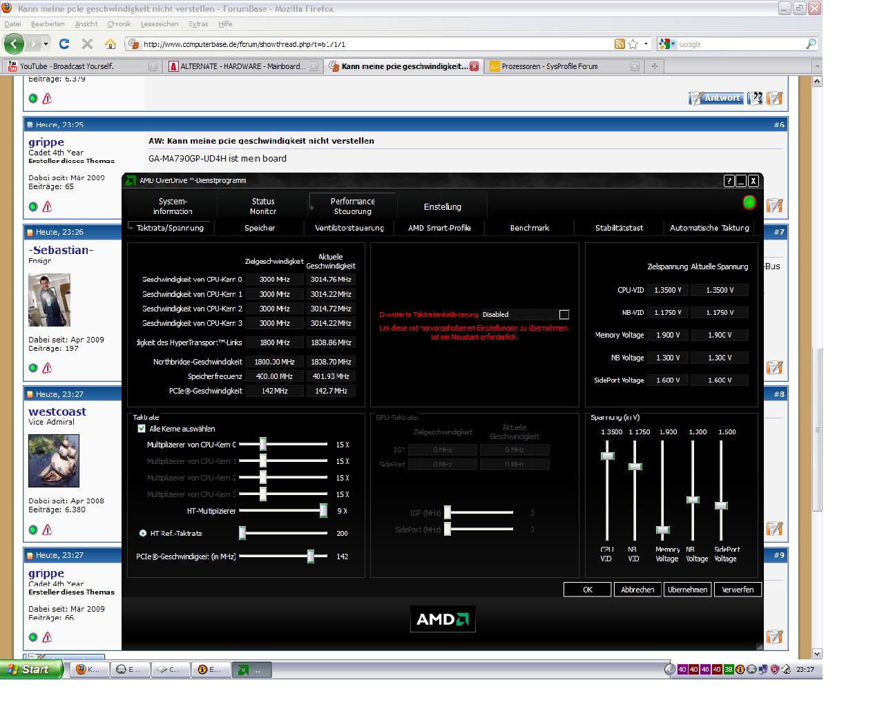 hast du schon OC rausgenommen und versucht, pcie auf 100 mhz zu fixen?