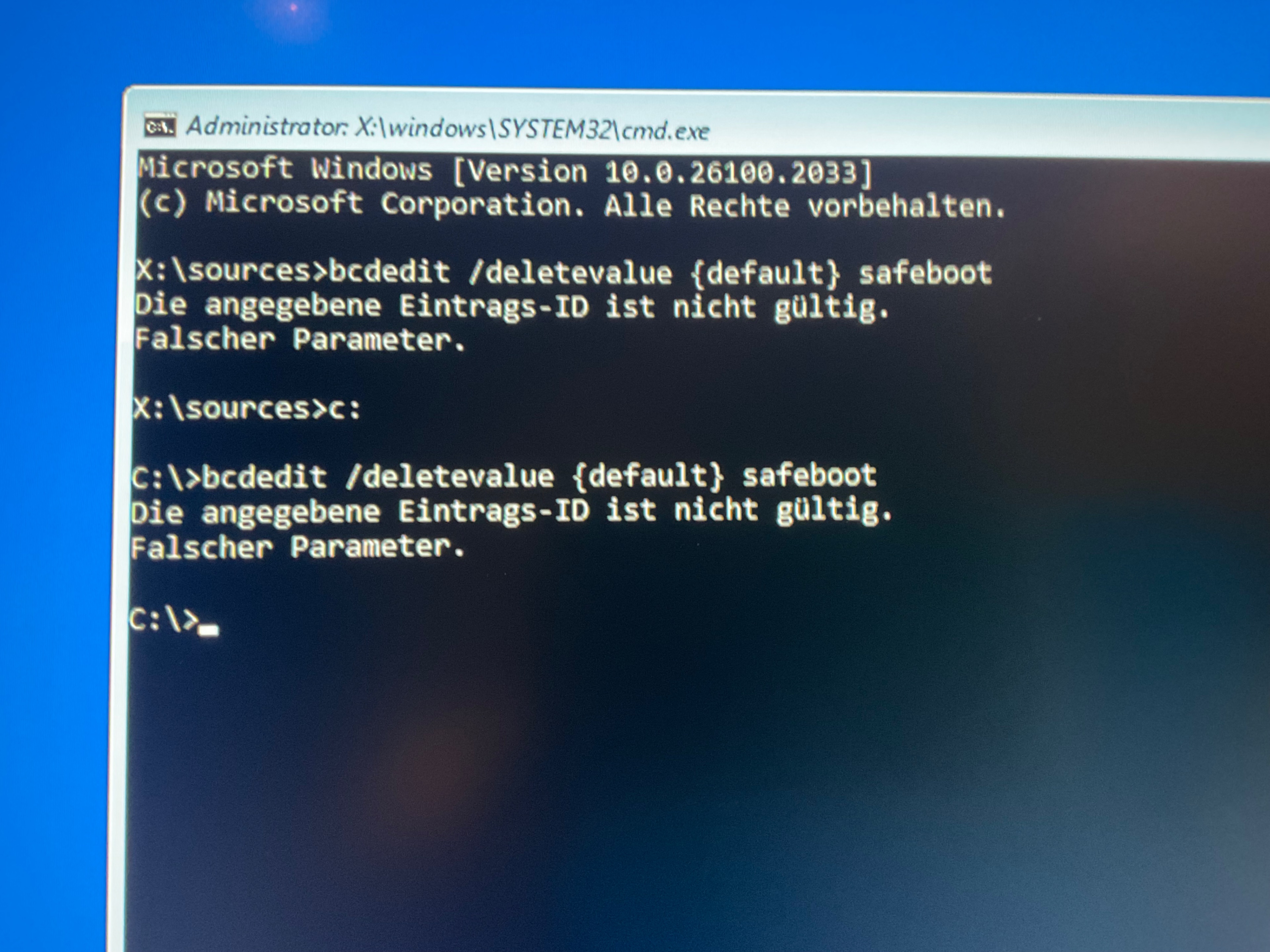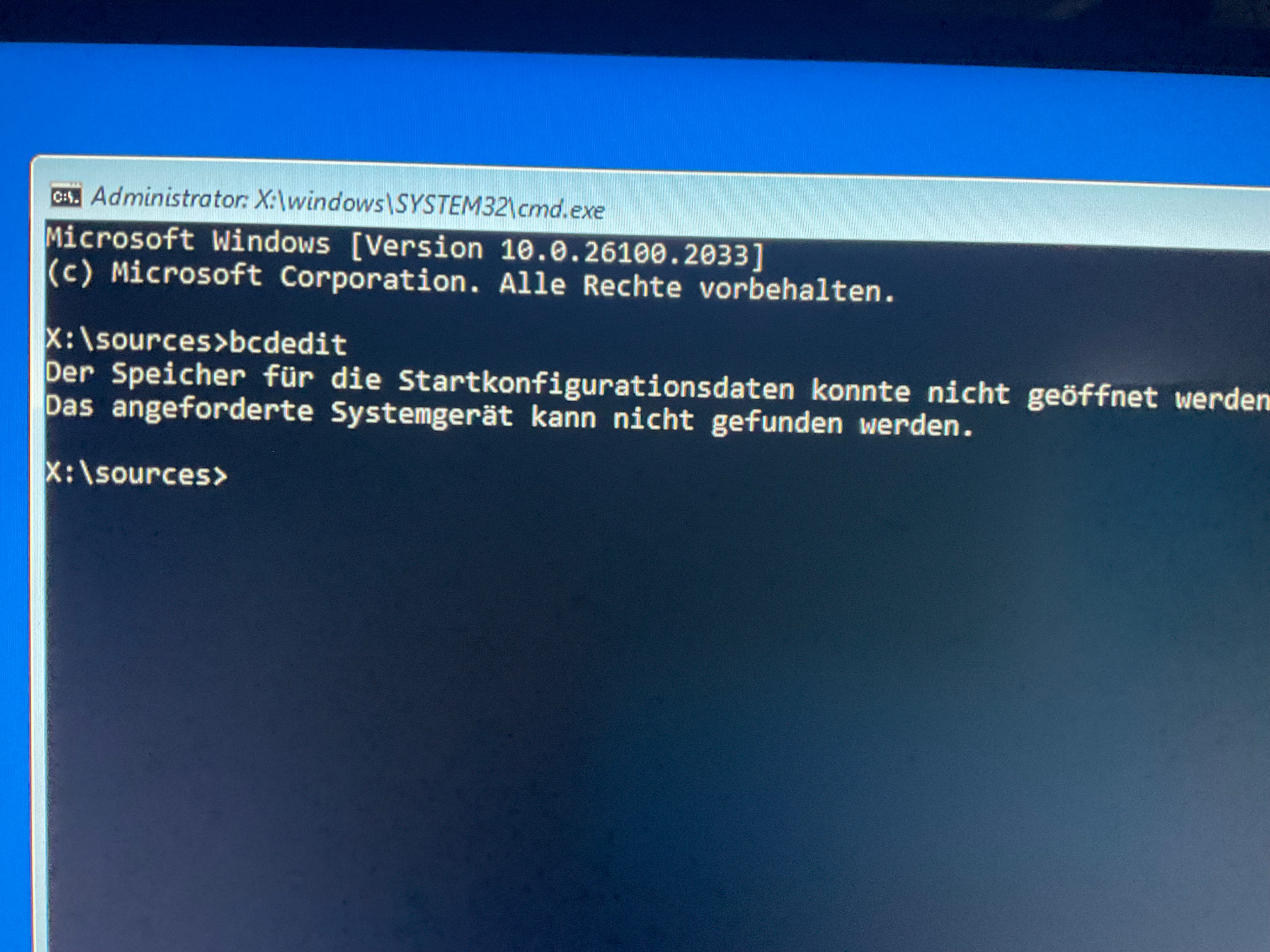 Hm ... dann scheint die BCD-Datei nicht gefunden zu werden. Was die Ursache dafür ist - kann ich nicht sagen .. dafür bin ich auch nicht tief genug in der Materie drin.