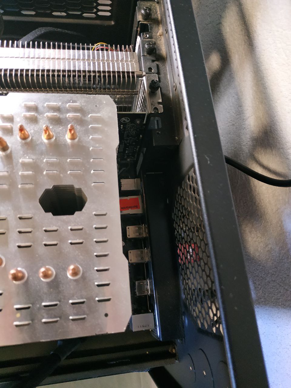 Wegen Kühlung: Ja man könnte an der Rückseite des Kühlörpers im Gehäuse platzmäßig noch einen abführenden Lüfter verbauen. Aber das Gehäuse ist sowieso extrem luftig, und mit einem normalen Case nicht zu vergleichen, hier kannst du dir gerne Produkt-Bilder anschauen:
