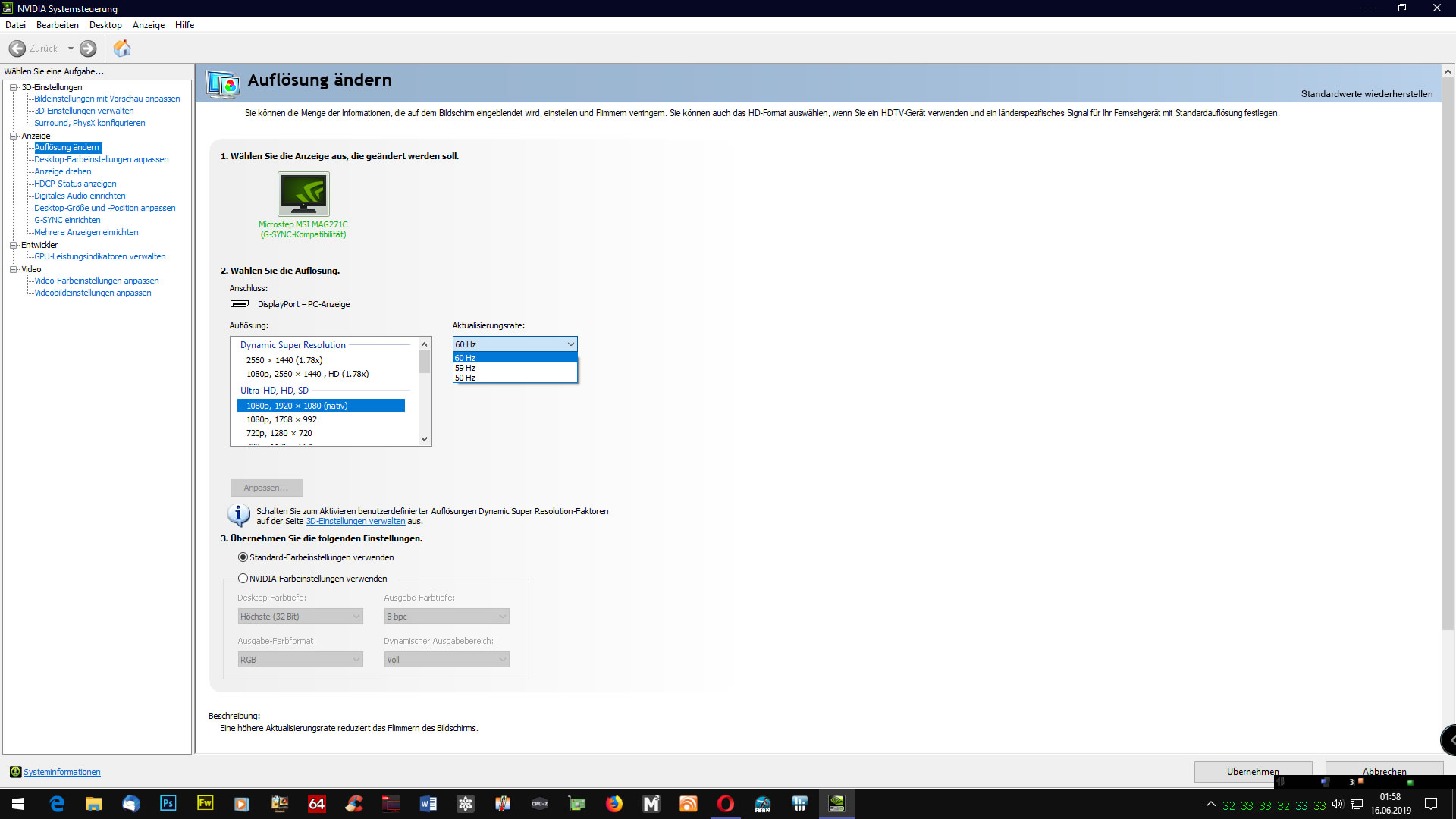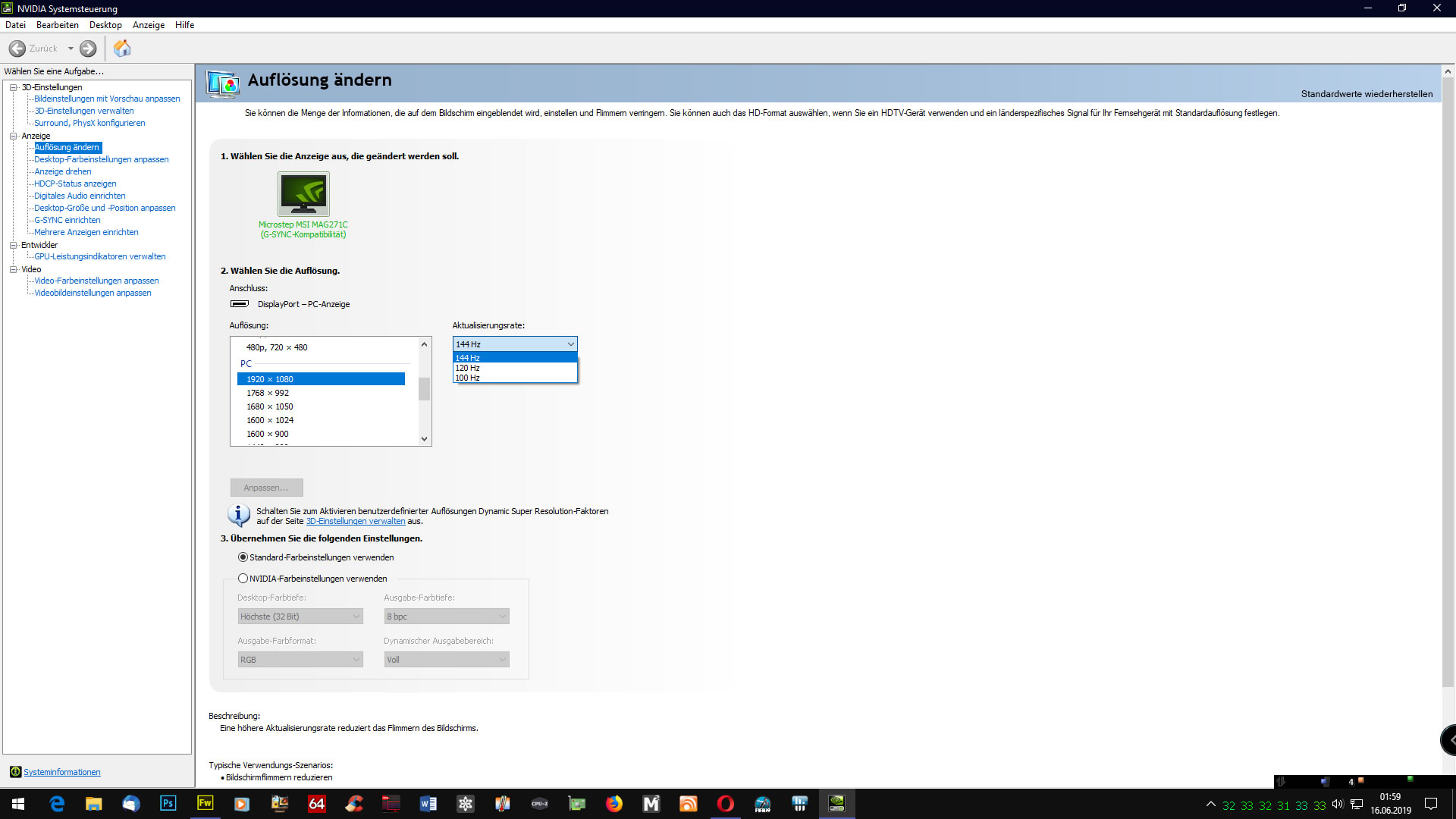 Manche Spiele "denken" anscheinend, dass mein Monitor auf 75Hz eingestellt wäre, obwohl er dies eben nicht ist. Als Beispiel wäre hier Dishonored 2 zu nennen, wo mir in den Einstellungen die Option "VSync mit angepeilten 75Hz" angeboten wird. Mein Monitor ist der Asus VG245H, der zwar FreeSync bis zu 75Hz unterstützt (Hab ich mir zumindest sagen lassen), bei mir im NVIDIA Controlpanel jedoch unter "Auflösung ändern" auf "Ultra-HD, HD, SD"/ "1080p, 1920x1080 (nativ)" mit 60Hz eingestellt ist. Eine 75Hz-Option gibt es auf der selben Seite nur unter der Kategorie "PC"/ "1920x1080". Das Spiel sorgt wahrscheinlich dafür, dass der Monitor und die Grafikkarte beim Wechseln zwischen Dishonored 2 und dem Desktop immer zwischen diesen beiden Kategorien im Controlpanel wechseln muss und es deswegen beim Alt-Tabben immer zu einem kurzen Blackscreen kommt. Das Spiel hat dann außerdem immer einen dunkleren Kontrast, als alle andere Anwendungen. Wie kann ich dem Spiel klarmachen, dass mein Monitor auf 60Hz eingestellt ist und der Monitor sich nicht stest kalibrieren soll?