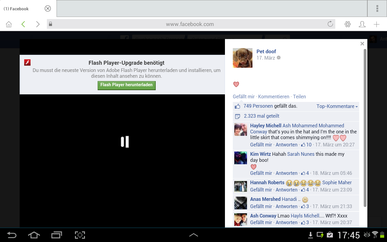 Hallo zusammen. Ich benutze für mein Samsung 10.1 Tablet den Roboform (passwort manager) damit ich mich mit einem klick in meine Facebook Seiten einloggen kann. Wenn ich mir dann ein video ansehen will auf FB teilt er mit dass ich ein Adope flash player update machen soll..nachdem ich das gleich gemacht habe kann ich mir aber immernoch nichts sehen.