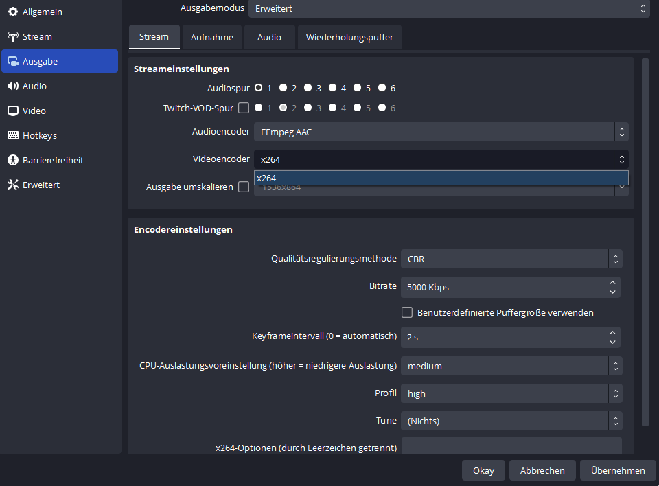 wenn du nur deine switch spiele streamen willst, dann teste auf veryfast oder faster bei (wo im screenshot very fast steht)