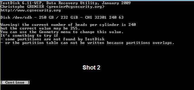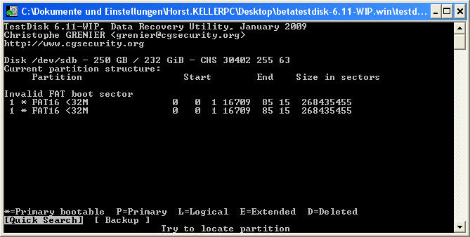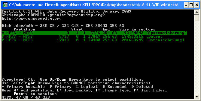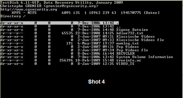 hier meine neuen Screeshots. Ich kann mit der Funktion "p" meine Daten sehen und auch kopieren. Aber so, wie es augenblicklich ist, kann ich (unter normalen Umständen) nicht auf die Platte zugreifen. Bitte um weitere Hilfestellung