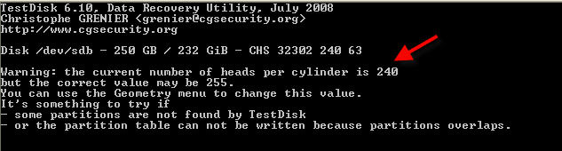Starte Testdisk, bestätige bei Log-Datei erstellen mit Enter, wähle deine Festplatte und bestätige mit Enter.