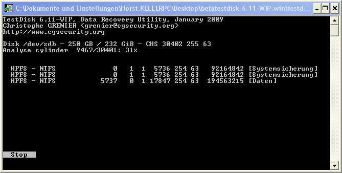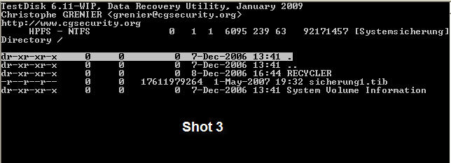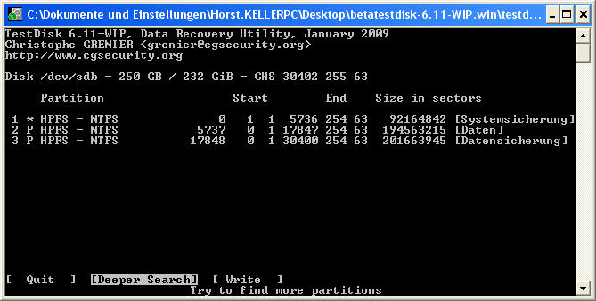 Du darfst dann Testdisk nicht beenden da du dann die Einstellungen verlierst.