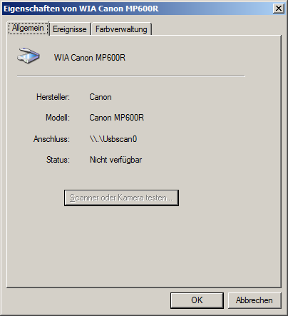 Es fehlen anscheinend WIA Treiber.