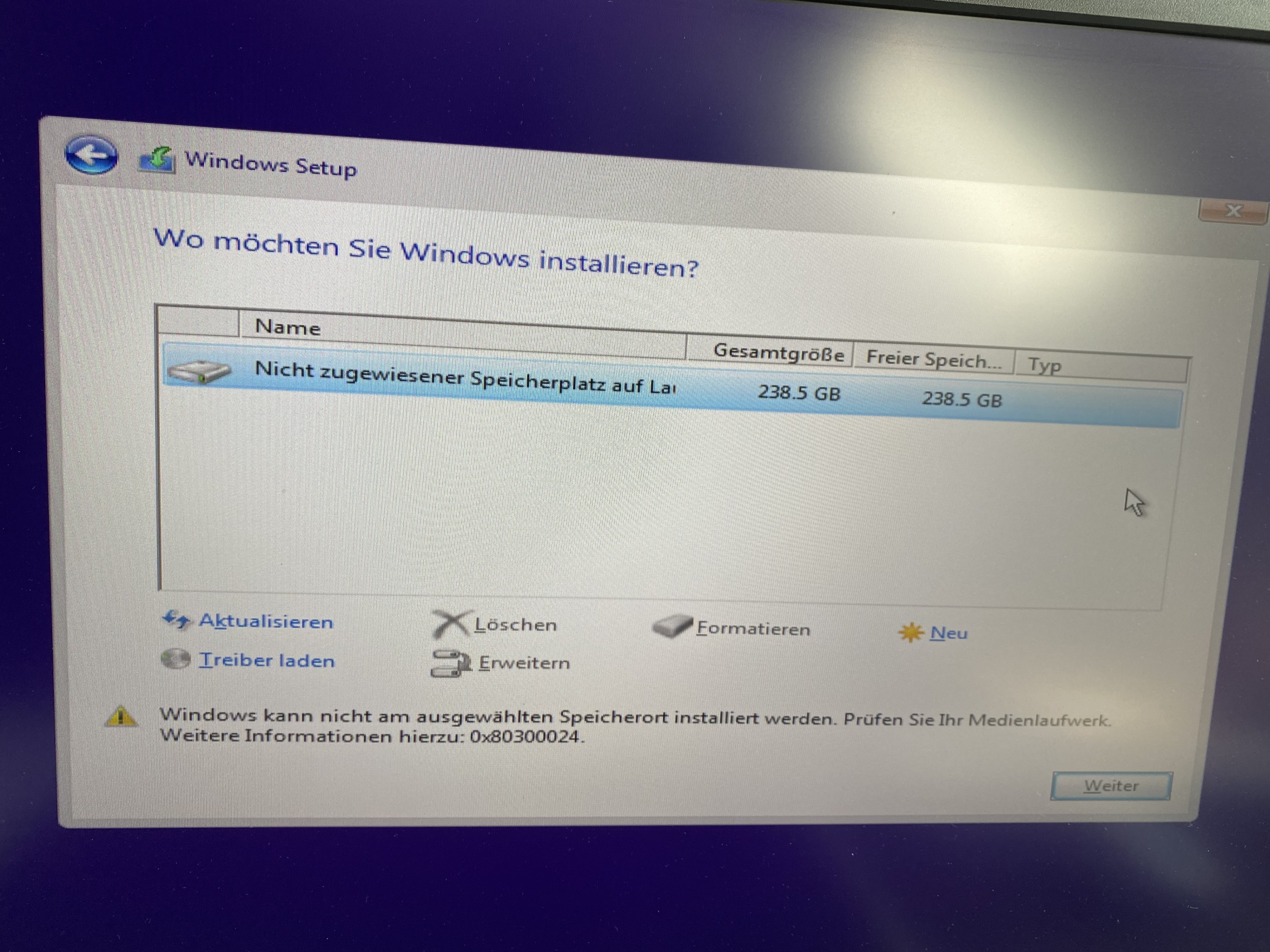 Kann nirgendwo Windows installieren.