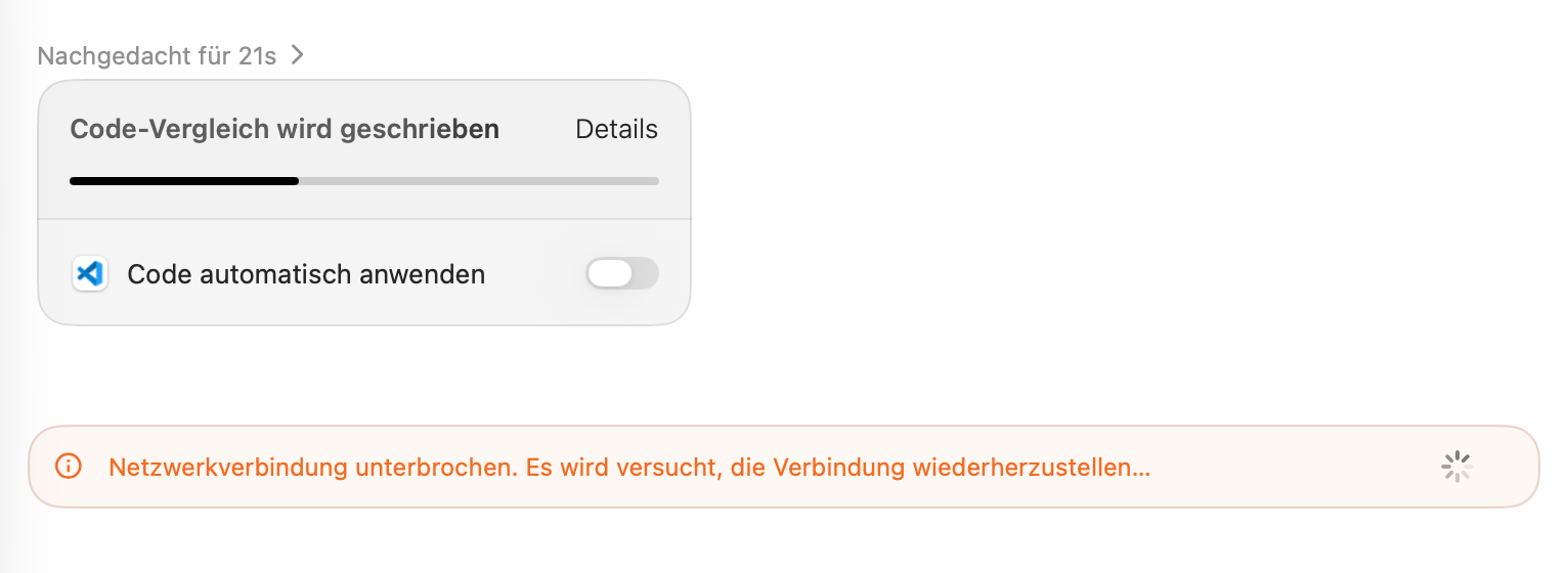 - wenn du dir die Änderungen als Zip gibst, was ist dann da drin? Sonnet gibt dir vermutlich Snippets zum Ändern, das musst du ja manuell machen -> Suchen und Einfügen/ Austauschen?
