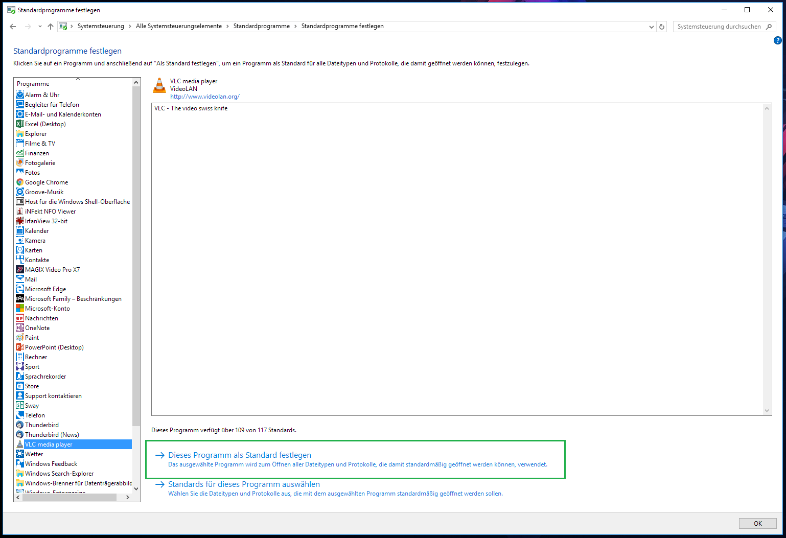 Systemsteuerung\Alle Systemsteuerungselemente\Standardprogramme\Standardprogramme festlegen