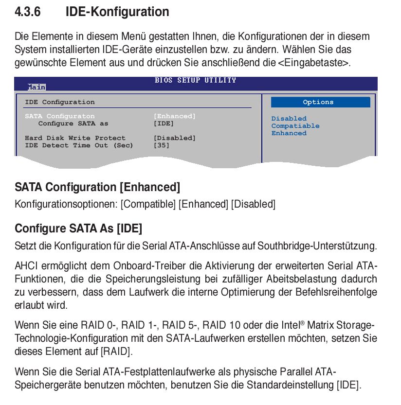 Und wie sind deine Bioseinstellungen der SATA Festplatten usw.