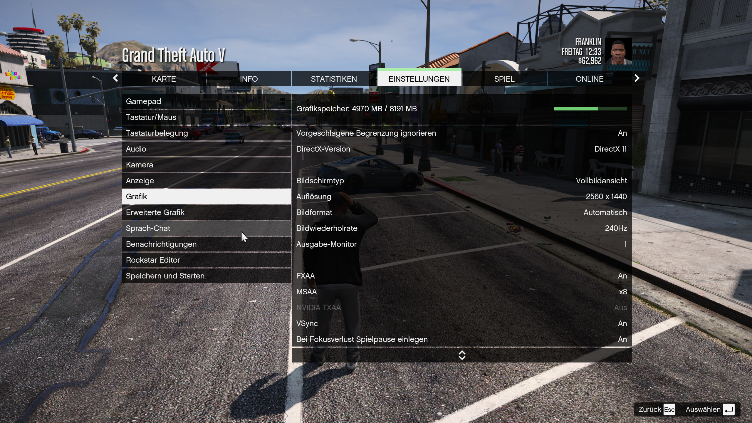 ich bin ein bisschen am Verzweifeln, da ich es in GTA 5 einfach nicht schaffe, eine vernünftige Kantenglättung hinzubekommen. Ich habe schon diverse Dinge versucht und eingestellt, aber es stellt sich einfach keine Besserung ein. Meine aktuellen Grafikeinstellungen habe ich mal als Screenshots gespeichert und ein paar Beispiele. Man sieht z.B. an den Gebäuden ganz gut, wie "gezackt" die Kanten sind.