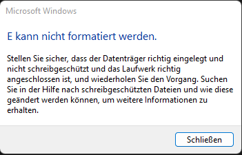 6. Wenn man dem Formatierungsvorschlag folgt, kommt "Windows konnte die Formatierung nicht abschließen".Screenshot 2023-11-26 164644.png