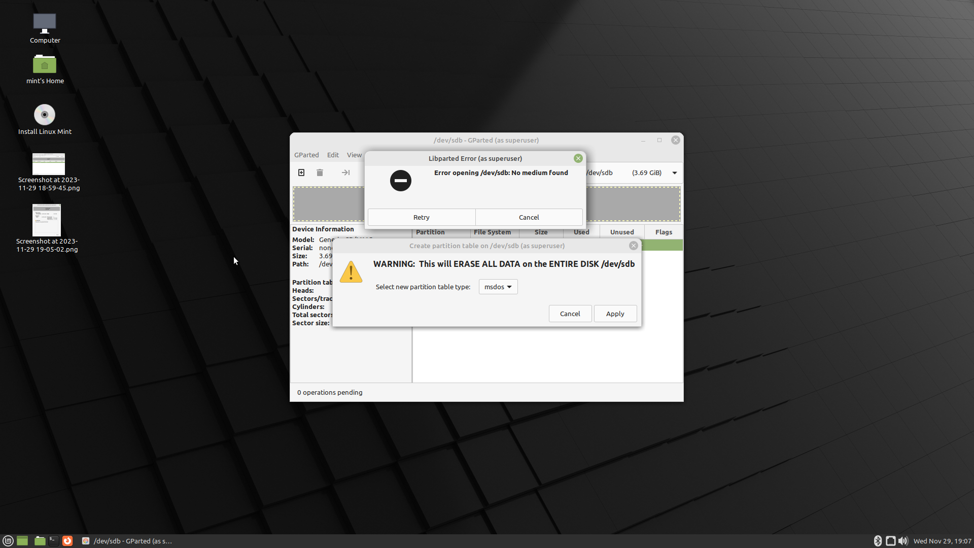 Die Fehlermeldung lautet u. a. Partitionstabelle nicht gefunden.