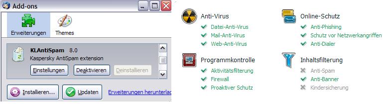 Und zwar werden die Spammails seit ich den Kaspersky 09 installiert habe nicht mehr als SPAM erkannt. Ich habe alle Einstellungen die mit Mail im Kaspersky zu tun haben deaktiviert und beim Thunderbird den Spamfilter so eingestellt, dass SPAM-Mails automatisch verschoben werden.