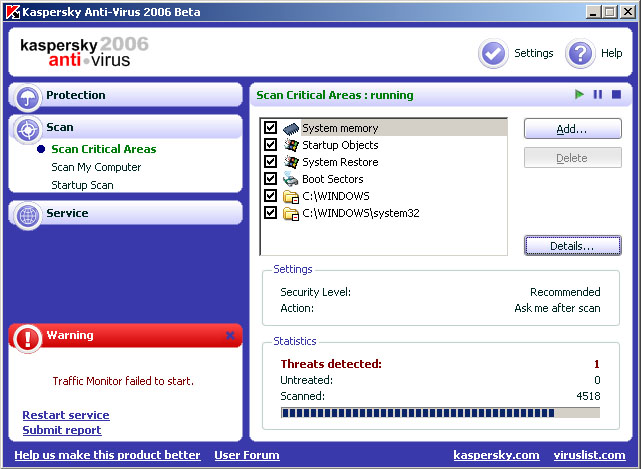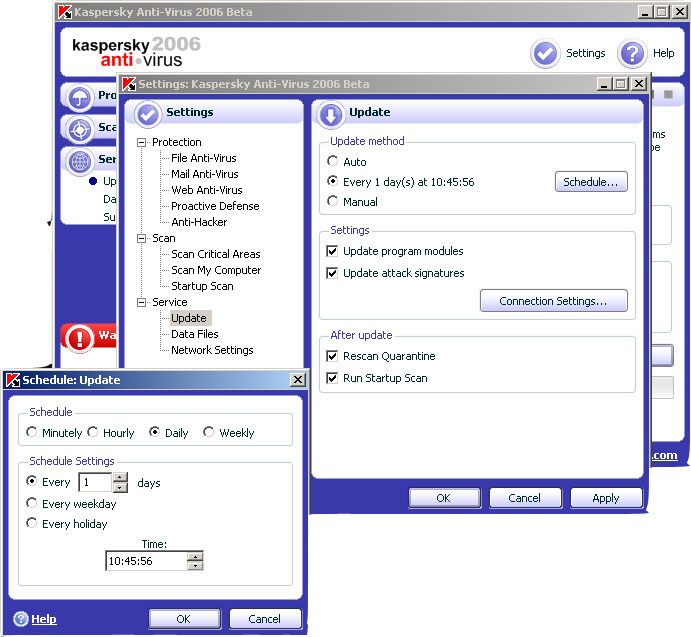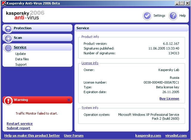Nach der Installation kündigt sich Kaspersky 2006 gleich am "Willkommens-Bildschirm" (siehe Anhang 1) an.