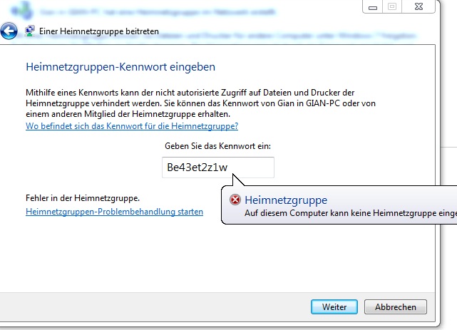 Ich habe die alte heimnetzgruppe gelöscht welche ich auf dem anderen Computer erstellt habe.