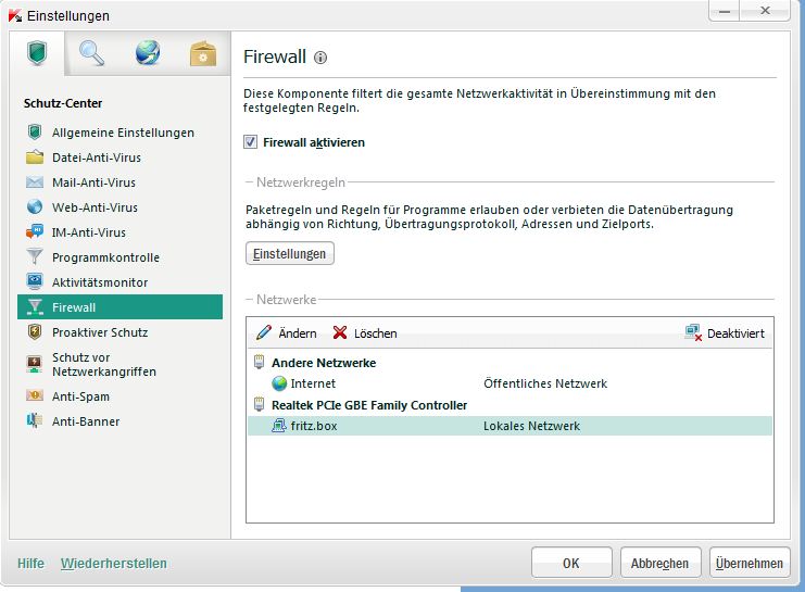 Wie stelle ich die Kaspersky firewall denn so ein das sie das Heimnetzwerk zulässt?
