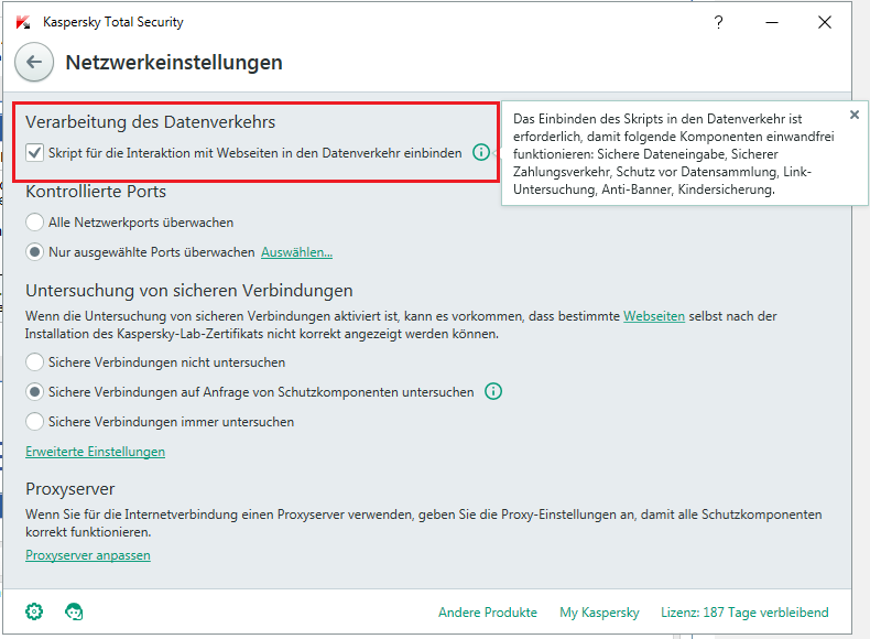 Schon seit längerem stört mir, dass Kaspersky bei jedem Webseiten-Aufruf eine zusätzliche Datei läd.