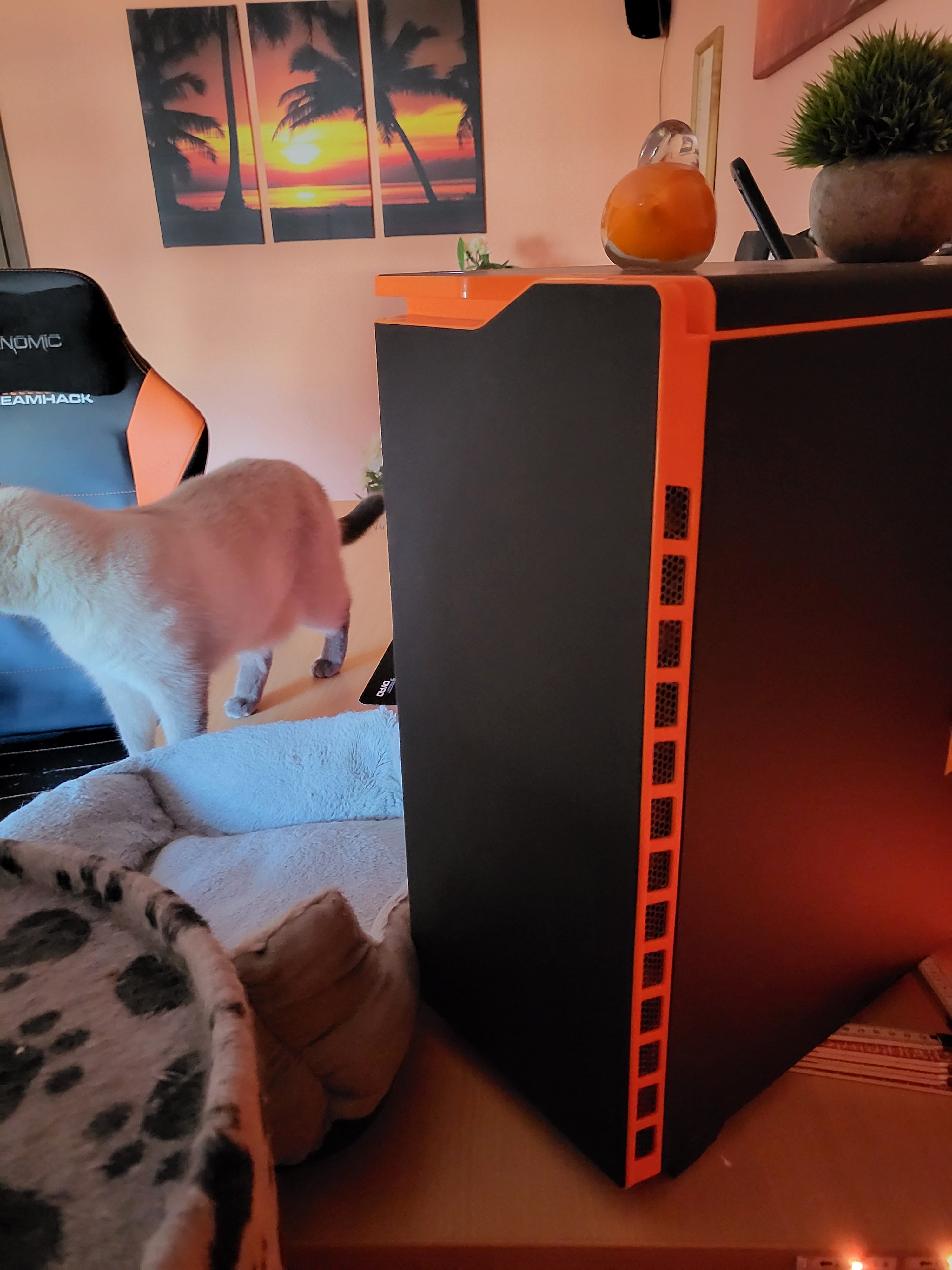 Ich hab im Moment das NZXT H440 und es ist ziemlich perfekt, dass die Lufteinlässe nur auf der rechten Seite sind, da dort meine Katzen keinen Kontakt haben.