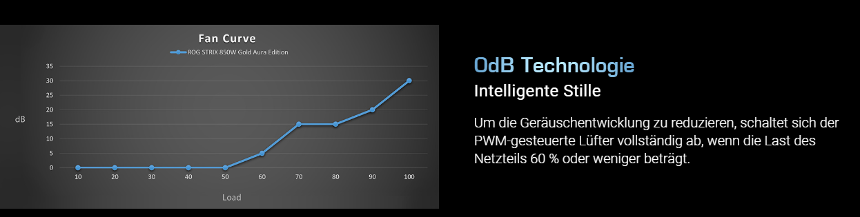 Auf der ASUS Website wird auch gesagt, dass der Lüfter des Netzteils unter 60 oder 50% Last gar nicht erst an ist.