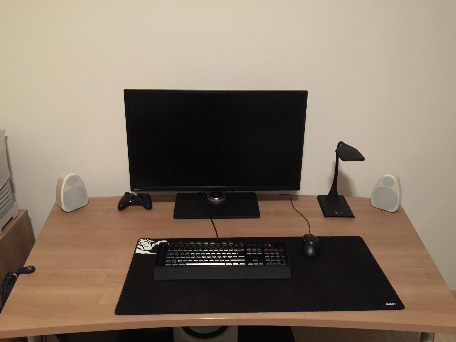 - Platz neben dem Monitor: links 37 cm, rechts 46 cm --> der Monitor steht wegen der Lampe nicht ganz mittig auf dem Tisch, könnte ich aber ändern und hätte dann beidseits ~ 41 cm