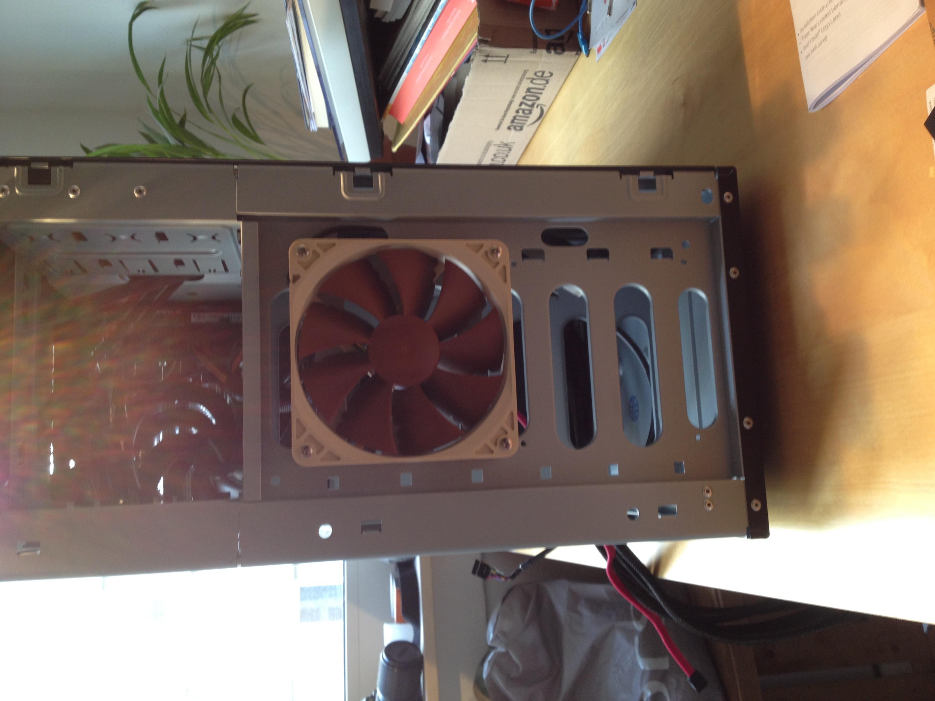 Frontseite vom Gehäuse vorsichtig entfernen, FrontLüfter, DVD brenner und SSd/Hdd einbauen vor Mainboardeinbau, Hecklüfter nach Mainboardeinbau