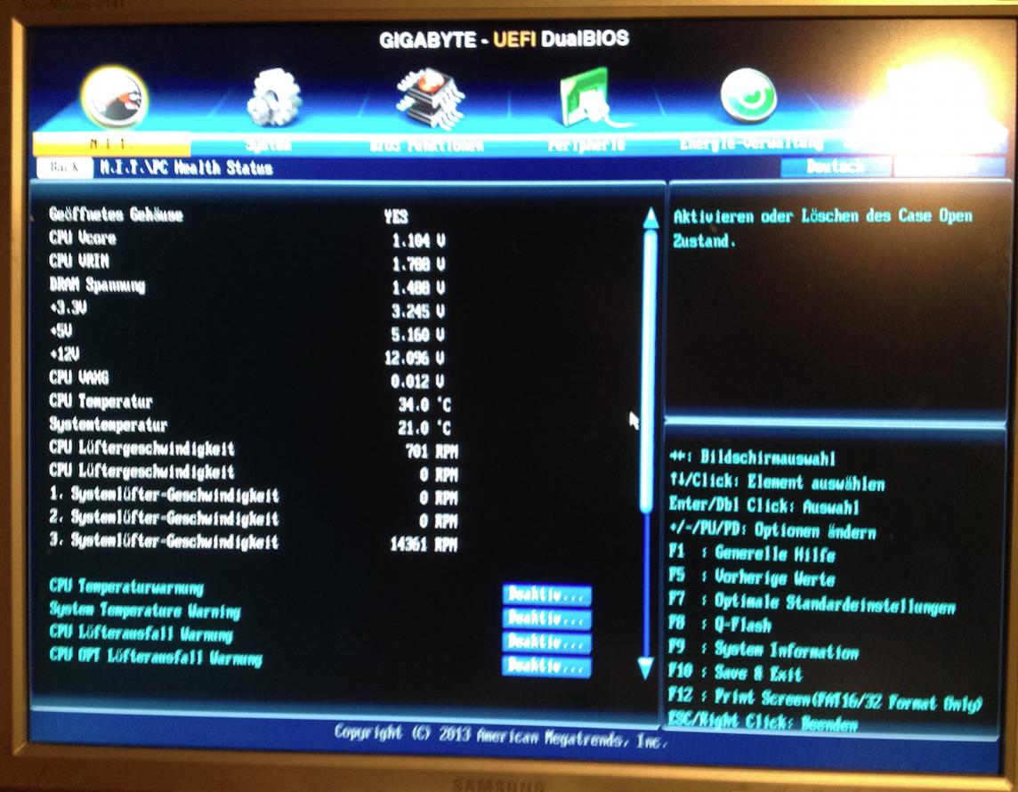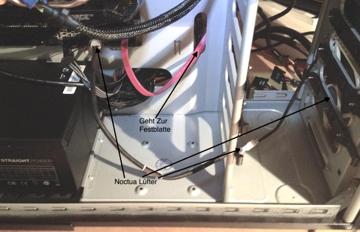 Den Noctua-Gehäuselüfter schließte an Sys-Fan an ... 4 Pin (haste 3 Anschlüsse).