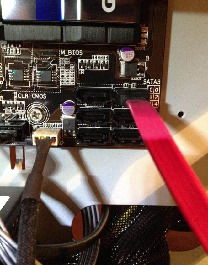 Das SATA-Kabel würde ich in SATA 0 stecken (steckt in SATA 1) ... geht aber auch so ...