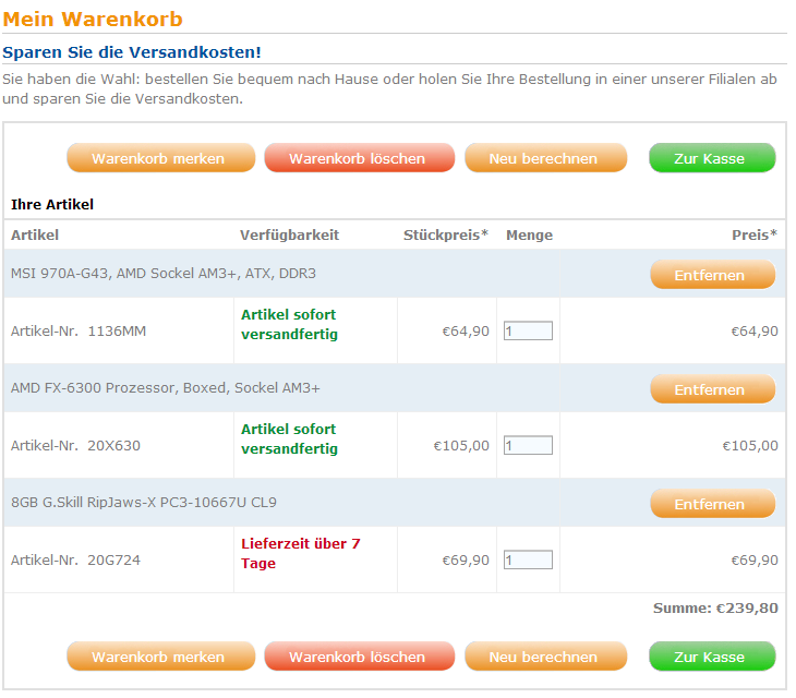 Den Intel i5-4570 + 8GB DDR3-1333 MHz + Mainboard aber erst ab 320€