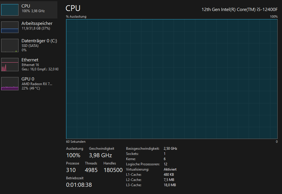 die cpu auslastung geht gerne auf 90-100% auslastung während die gpu noch weit davon entfernt ist.
