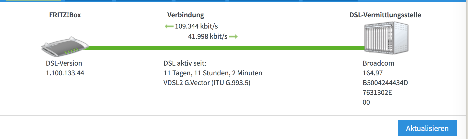 Die Kompatibilität zum VF DSL ist natürlich am allerwichtigsten. Ich denke VF nutzt Annex J. Die FB zeigt ja sehr schön die DSL-Geschwindigkeit an.