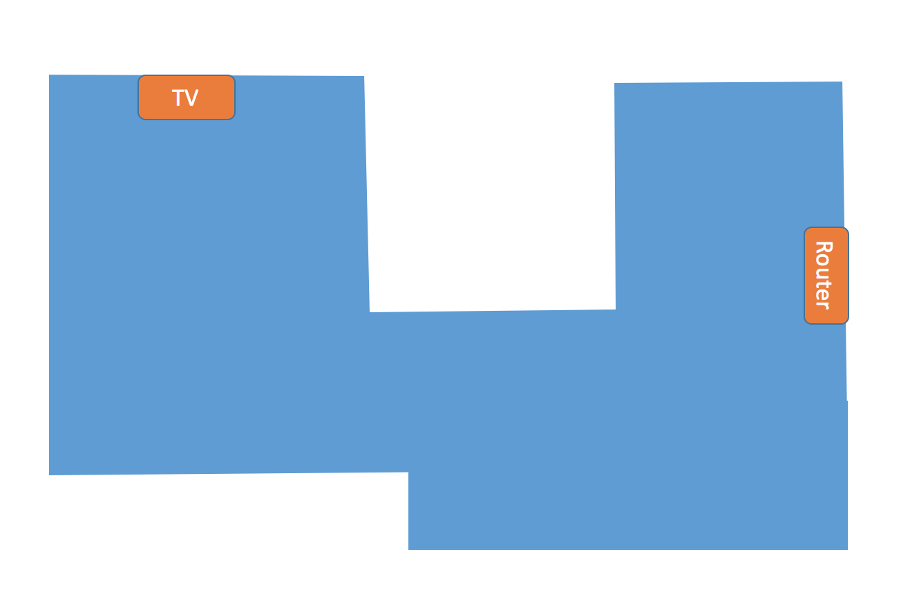 Ich habe aus Langweile mal mein Wohnzimmer grob nachgezeichnet und Router, sowie TV eingezeichnet.